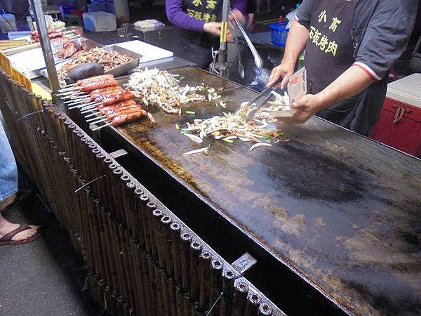 結果我還是忍受不了,買了烤肉來吃,回程可以吃葷食,你要我在這麼多美味食物的夜市裡能不動心,真是殘忍啊,給自己一個理由吧,補充體力好了,給個心靈的能量,出名的店家不必在這人多時來湊熱鬧,鴨肉羮晚上是不開的,其實他們若願意營業,我也願意排隊吃的。