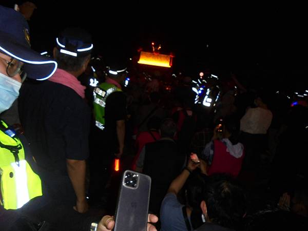 有些地方連路燈都昏暗,我有準備小手電筒,當然一堆人在走,安全性還是有的,但有點亮光,至少更安全吧,路上還有人在提供小閃燈給參與者,有收受就會有授,同樣是受,就有來有回,不能只有拿,有空要有回饋才是,好運氣的是,我鑽轎底,在元長鄉這兒,小時候在東港迎王跟著外婆鑽轎底,現在我都這般年紀,也能回味童年時的體會,只覺背部一股沉重,又有感覺輕盈,是心裡錯覺,還是真有神靈力,我也不知,但這不是壞事,至少我是信了。