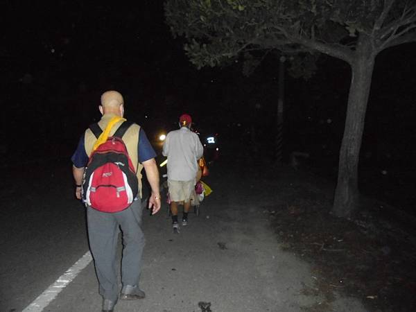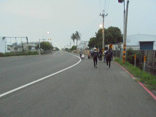 走出城鎮,明顯就是一片農地感,還好是先走夜晚,假如白天時走,應會多受些陽光的曬,走到這兒,都還沒有累感,體力還算是可以,但我早知道,沒有一次是可以自在地走到最後的,其實是可以坐車休息一下的,因為很多人都開車感是騎機車的,也有不少騎腳踏車,但我還是堅持至少要走些路才能顯示我的誠心。