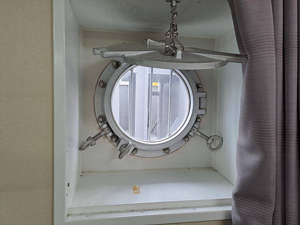 每次上船去,都覺得這些船員們很有毅力,過去海權時代,地理大發現時,海盜們在船上冒險,開創新天地,也為自己的一生找尋一個機會,但你有時得付出生命,當年自己的祖先來台灣不也是如此嗎?台灣天氣炎熱,熱帶疾病不少,生病後沒有醫藥而死亡很多,所以保生大帝及王爺送瘟神的信仰普遍,人在無助時,沒有錢得到好的醫藥,抓些草藥吃之外,就是拜神了,生命如此脆弱,但你能撐下去,平安的日子就能得到,不必富裕,只要平安。雖然上船去,但也不是每次都能拿相機照照的,畢竟不是船員,上去下來很快,來來去去,這回有點兒時間,發現船上採光的窗戶都有壓力蓋,可見在大海上的狂風暴雨時,大浪或是風壓都可以毁損窗戶的,舊時代的木製帆船更是難以抵擋吧,所以媽祖保佑,我們的祖先們都能平安渡過大海,不論是去南洋,還是來到舊名為琉球的台灣,你若是活在當時,你願意去冒險,也許能改變人生。