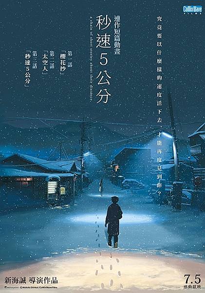 沒有提起的勇氣,相互思念的兩人永遠是在等待對方,彼此之間的位置是無可取代了,而事實上真正在身邊的人,卻被這樣無情的被拒絕,被忽視了,我知道真愛不常見,因為現實即是如此的,這是怎樣也無力挽回的距離,不論是在你身邊的人,在你心中的人,距離都無法再縮短,過去我遇到的種種,猶豫還是錯過都好,不完美似乎才是生活的一切,然而多麼希望如願啊!這部片子是我開始喜歡新海誠作品的起點,那在車站車箱內不停看著手上的錶那畫面,也是我喜歡卡西歐錶的來由,假如我的動漫女神雪野百香里的那部言葉之庭上大銀幕,我會再花錢去尋找感動的。