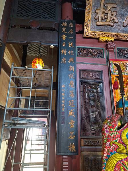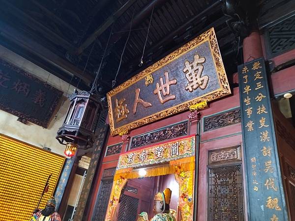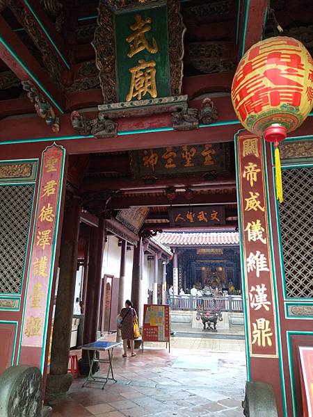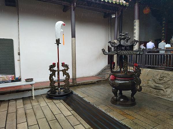 武廟是一定要去的,在裡頭繞來繞去的,幾乎把所有牌匾及對聯都看遍,反正外頭雨大,一時也沒有辦法出去,過去跟家人來,來去匆匆,我這個喜歡書法及歷史的,總喜歡看古蹟的細節,是那年那月那個人寫的,書法的風格又是什麼,武廟有一個匾額是寫大丈夫三個字的,我超喜歡的,也有幾組外國人在裡頭,文化的洗禮,很廟宇裡最容易瞭解的。