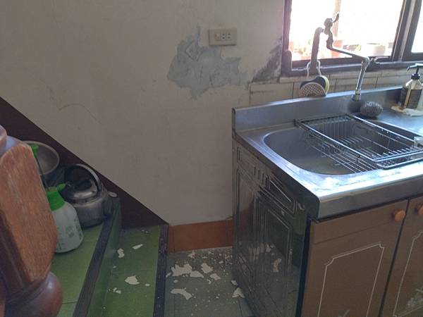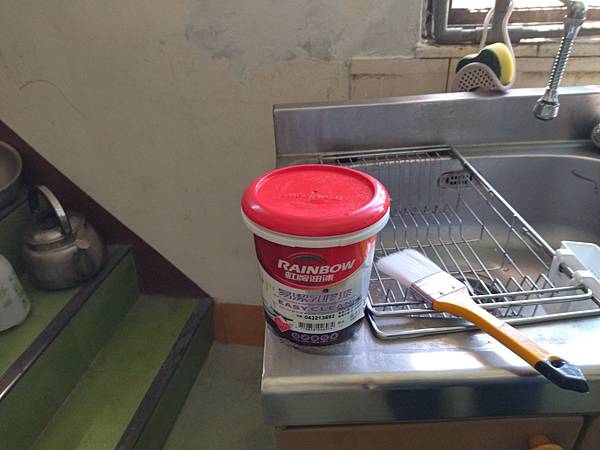 廚房角落也有同樣的情形,都把工具材料都準備了,再花些時間,也將之完成。